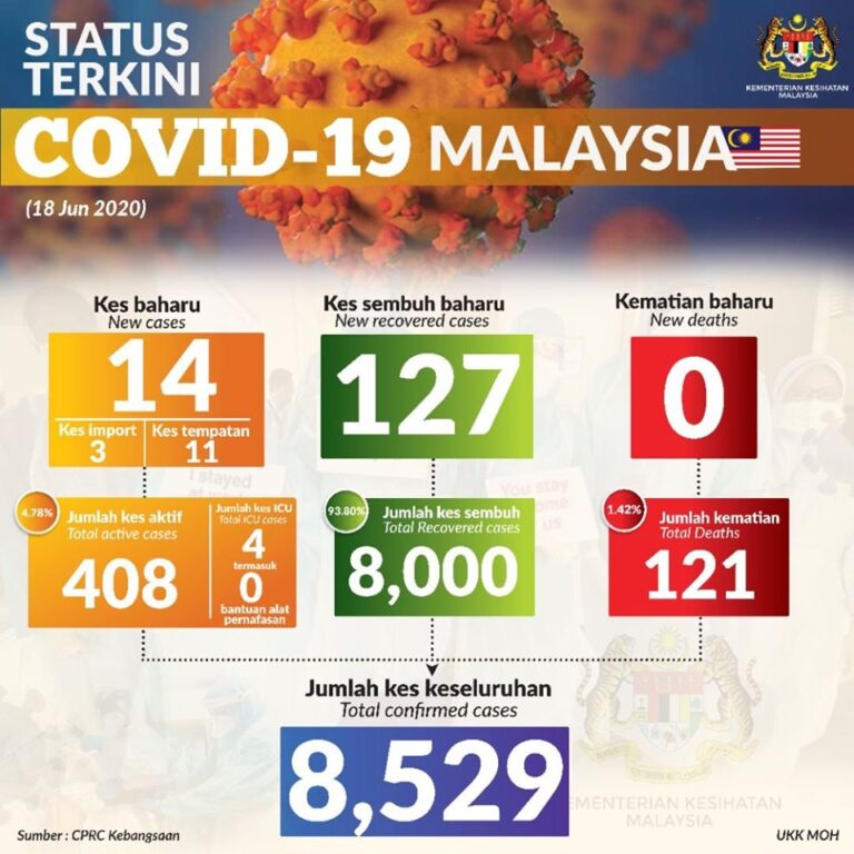 STATUS TERKINI COVID-19 MALAYSIA : 18 JUN 2020