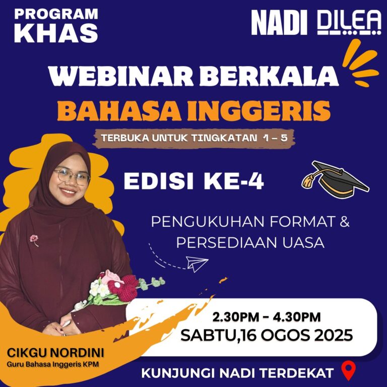 TARIKH : 16 OGOS 2025 MASA : 2.30 – 4.30 PETANG PESERTA : PELAJAR SEKOLAH TEMPAT : NADI FELDA NENERING 1 Tujuan:Webinar berkala Bahasa Inggeris ini adalah untuk meningkatkan kemahiran penguasaan Bahasa Inggeris dalam kalangan murid Tingkatan 1 hingga Tingkatan […]